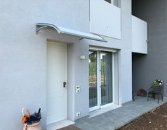 Pensiline in policarbonato anti-UV, leggere ma estremamente resistenti, pensate per proteggere porte e finestre da pioggia, neve e raggi solari senza oscurare l’ingresso. Il trattamento anti-UV evita l’ingiallimento nel tempo e garantisce trasparenza e brillantezza a lungo, unendo design moderno, minima manutenzione e lunga durata.